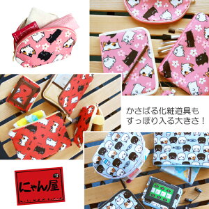 にゃん屋 猫3兄弟シェル型ポーチ 3種類 | ポーチ おしゃれ かわいい 小物入れ 猫 モチーフ 猫デザイン 猫グッズ 猫雑貨 猫 ねこ ネコ 化粧ポーチ 化粧入れ ミニバッグ ケース セラミック藍 敬老の日
