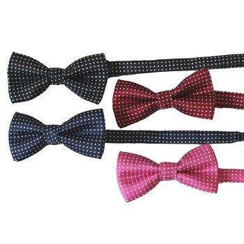 やや光沢のある生地に小さな水玉をあしらったかわいい蝶ネクタイです。